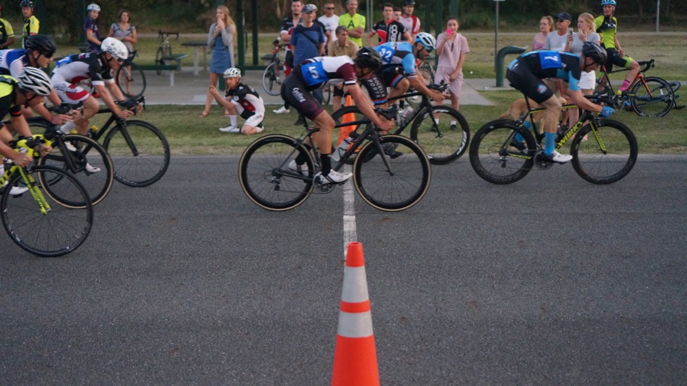 A very fast A grade race with an average speed of 49.6kph! Jay McCarthy repeated his win at the Brisbane Blast winning both primes and the win by quite a margin.